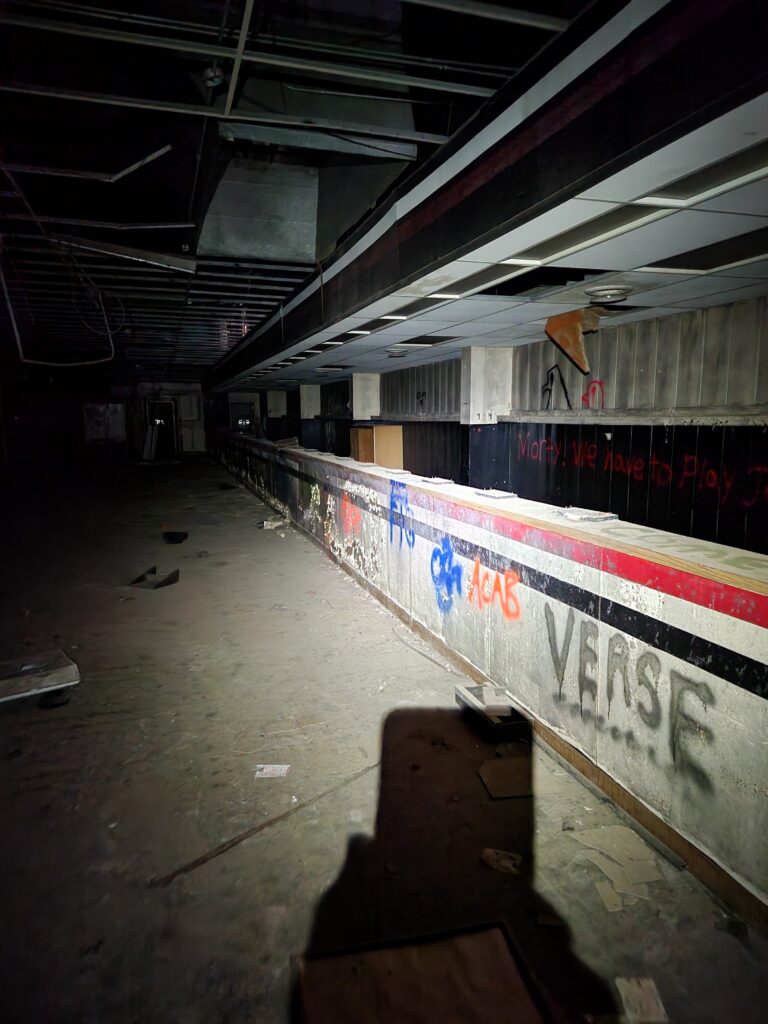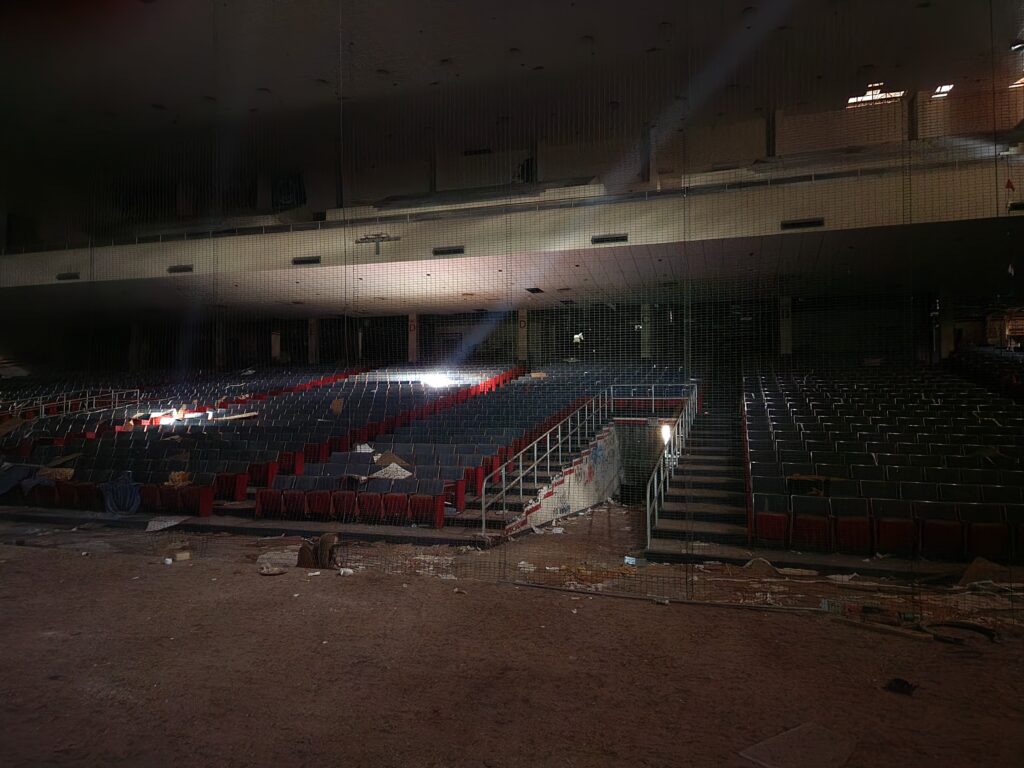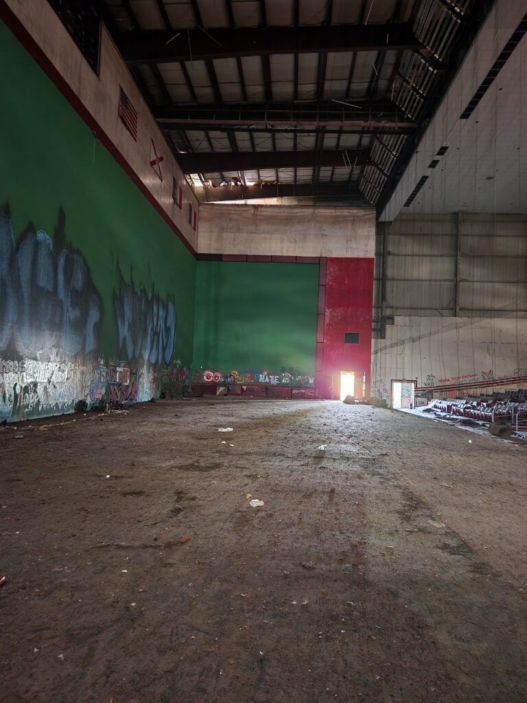 Nighttime when I first visited so no sunlight coming through. This taken from the fronton itself – you can make out the wire screen at the top of the image