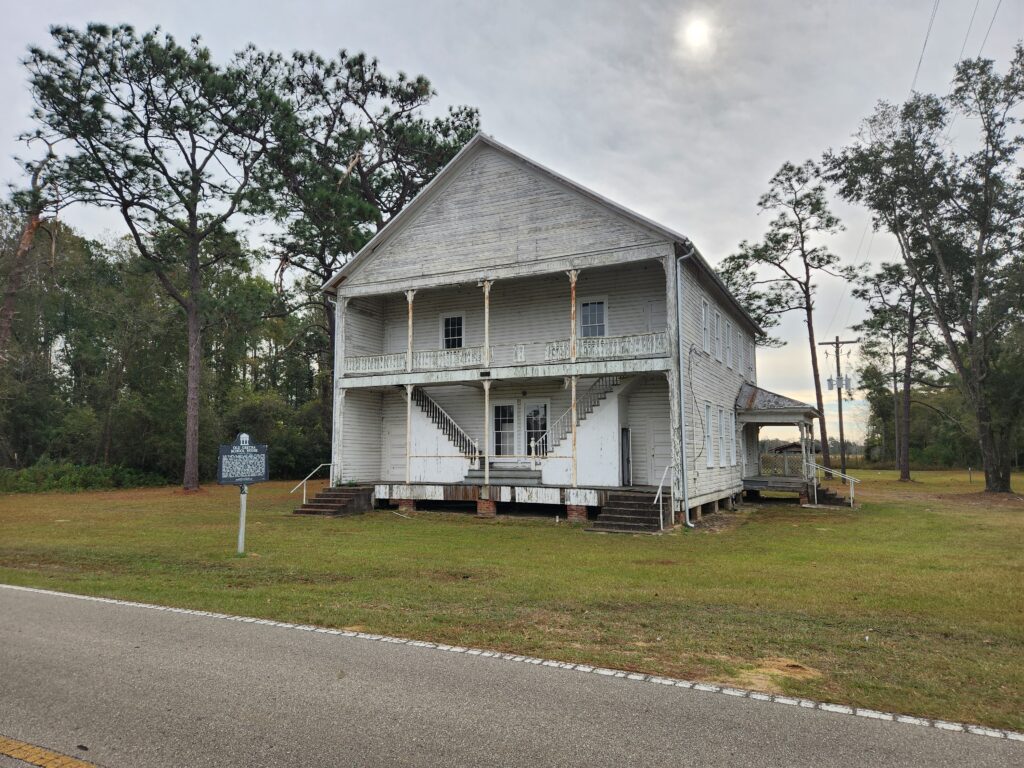 I take this pic of a historic school build 120 years ago in Gretna. The sign says how proud they are to preserve this piece of heritage. You can see it is just barely preserved.
