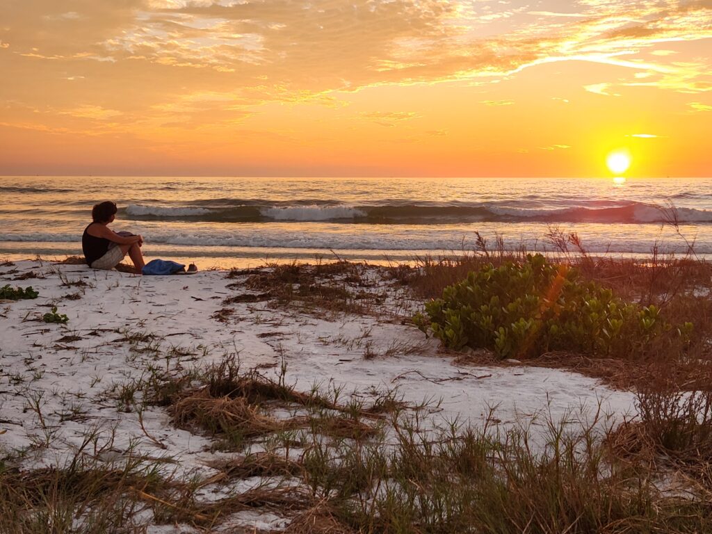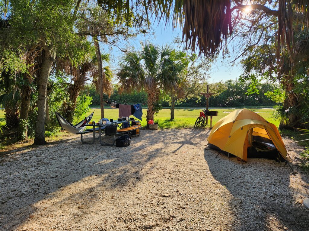 Stop for a quick lunch, some supplies at Winn Dixie and on to Fort Desoto Park. Now this is a park. Camp sites are great, we can’t get one with waterfront but that’s OK, ours is still pretty sweet – lots of privacy, with water and power. We set up camp and then head to the North Beach by car since it’s about 5 miles away and it will be dark by the time we get back.