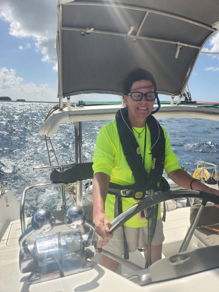 That means it’s relax time and we head in for dinner at Mac’s where rain threatens but never lasts so we have enjoy a decent dinner and the other boats join us. Clearly Dan, the ex-military guy on the other training boat is a no-nonsense, no fun guy. (I can name names as there is no chance he will ever see this). He was afraid of anchoring close and when we pull up beside them in the harbor we are easily a kilometer away from the action. Ian says he has never anchored that far away. He is also completely smileless and impossible to engage in conversation. His wife is nice and chatty and I suspect he is crazy jealous of her.