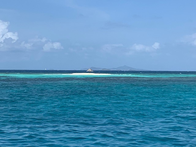 The Lunds and Christy snorkel over, I front crawl, a challenging but enjoyable swim in the choppy seas. A group of French sailors is a little surprised to see me surface but we chat amicably in my broken French and their broken English. They give me a cookie. It’s a big overcast and unless you’re a kite surfer not much to do on Umbrella Island so soon enough we swim back to the boat.