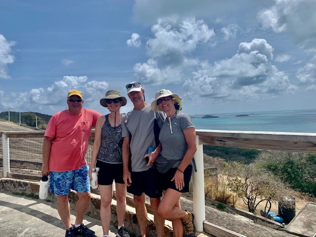 Greg and Laura are there with Brian, Erin and her cousin from the charter. Turns out Erin owns the cat they are on and she keeps it in the Barefoot fleet for chartering.