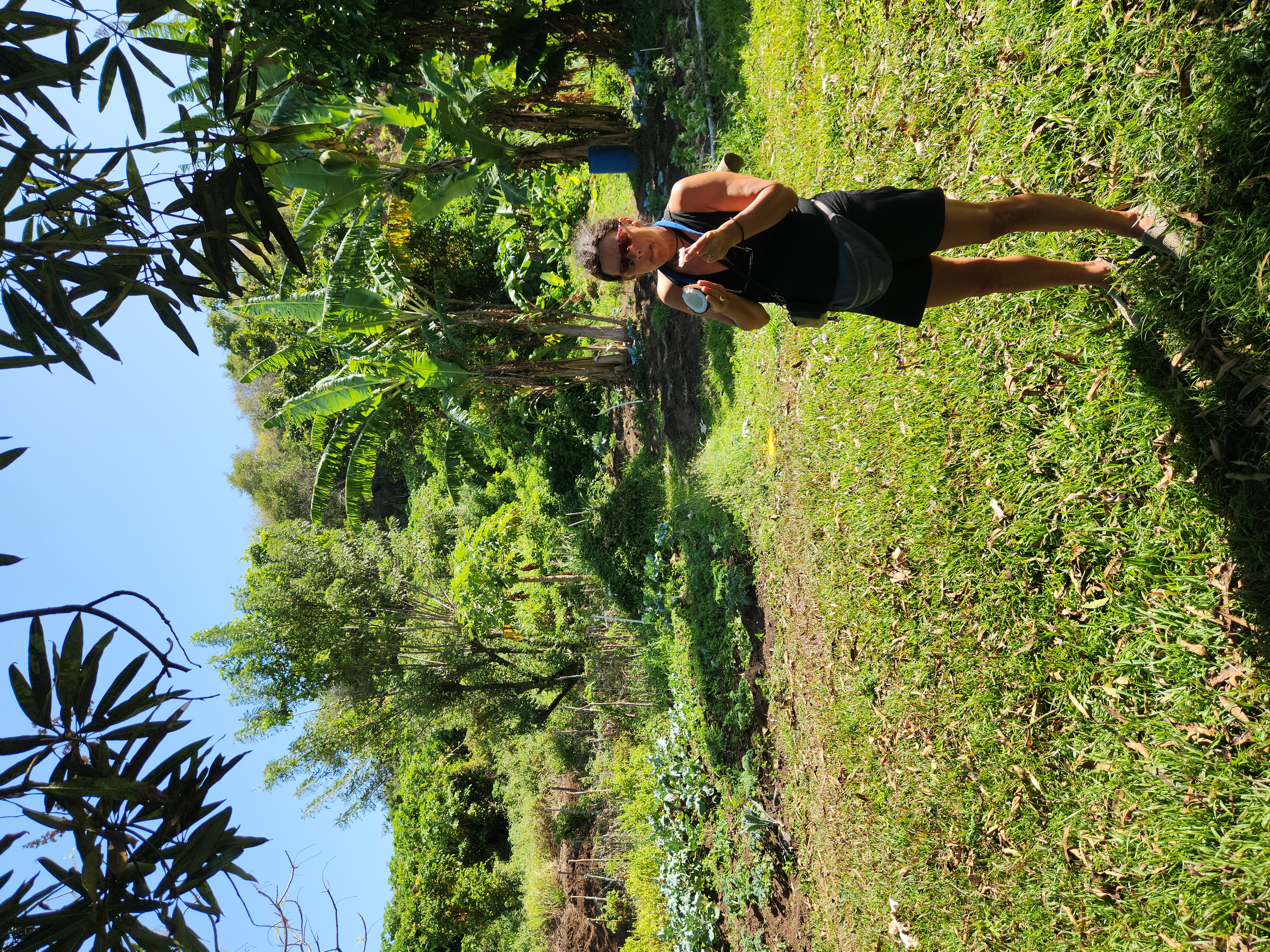 So he drives us up the hill, it’s not far and shows us around his patch. When we first see it we think it is fantastic, he’s got a large area of beautiful soil with perfect exposure. Turns out that’ we’re looking at maybe 10% of the acreage. He’s got everything you could imagine in a tropical garden and we’re pretty jealous of what he can get done, especially with almost 12 months of growing season.