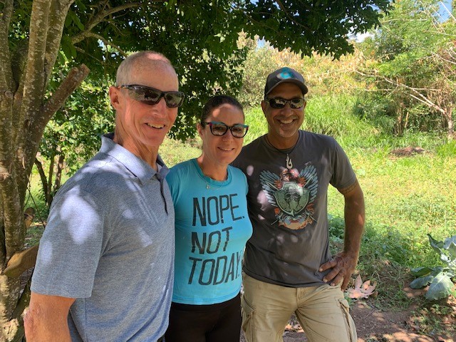 It’s a beautiful spot to watch boats come and go and have another pot of pretty good coffee – wait, is that Greg? Sure enough it is our Pura Vida captain and we wave hello. He comes up, hugs all around and he says he’s got to go up to his farm and water some plants, would we like to go? Not only do we have 3 hours to kill, we’d love to go see his garden.