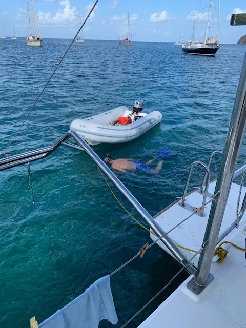 Ben and Audrey are still a bit miffed at us for not giving them the promised turtle show so I have an idea. I call our friend over there, Captain Neil and ask him if we run any risk dropping anchor, swimming with the turtles, then leaving even though we haven’t checked into the country (SVG). He says no. Good enough for me, we decide to take that plunge.