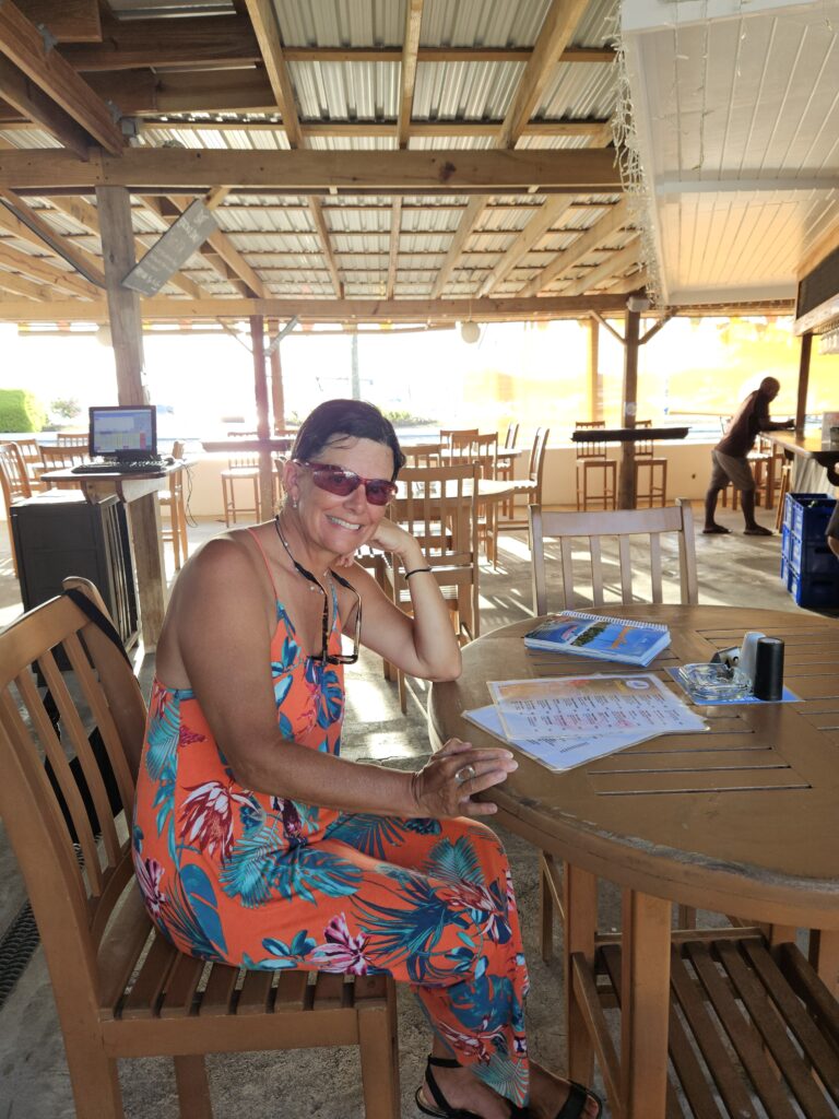 My foot is really killing me, I can hardly walk but we are going to go back to the great bar at Prickly Bay Marina for Happy Hour and to meet the lady who is going to exchange our “Windward Islands” guide book. Ours is missing a whole bunch of important pages and she graciously came to Prickly Bay to do the exchange.