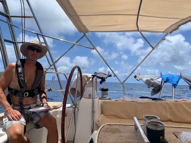Only problem is there is no wind! We have a very pleasant sail down the east side of Grenada but at noon we turn the engines on as there’s no way we’re going to get there before dark at this pace. Usually less than 10 kts of wind which is crazy for this side of the island. We expected to be hurtling down the coast at 8-9 kts with only partial sail but we’re crawling with all canvas out. Still it is very comfortable. So comfortable, in fact, I do my laundry!