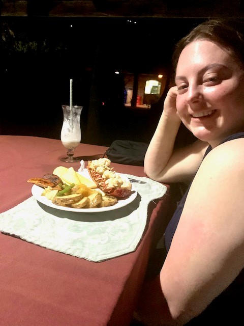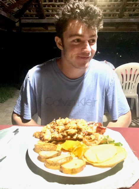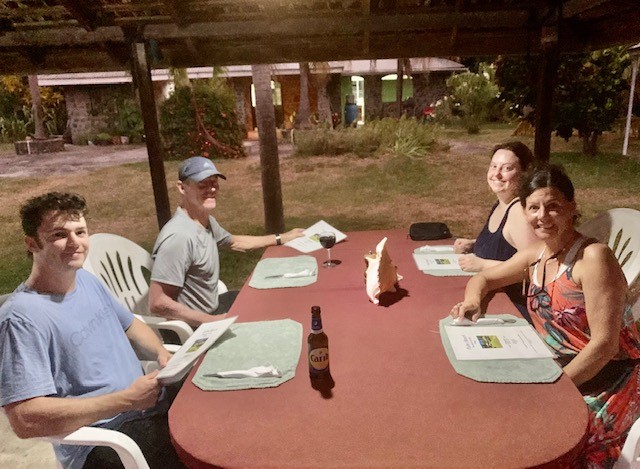 Motor back to PM where we tie up to the tight anchor spot and go ashore for dinner in the al fresco restaurant. We are the only guests until one more foursome shows up a little later.