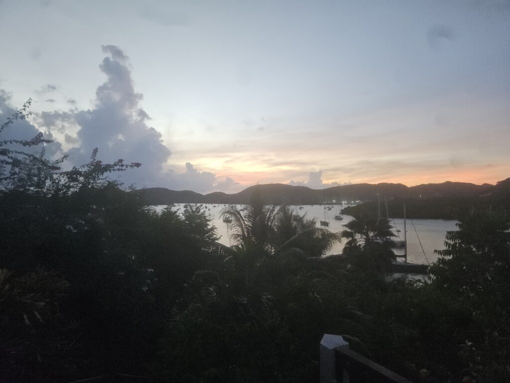 First, we get Vie, Bob’s neighbour the taxi driver to pick us up at 11 am and check out of Izzy’s. He takes us over to Bob’s where we settle in and Bob shows us the deets on how to operate his dinghy. I do a con call/zoom with Muskoka Millwrighting as Erin is having a problem with her phone. She can’t tell I am not 2 km away but rather 3000. Gotta love the Internet. I also do a zoom session with Fidelity to setup a replacement server – big cutover this weekend. Goes quickly thanks to the install/upgrade script I wrote.