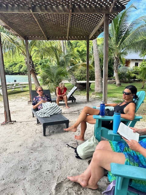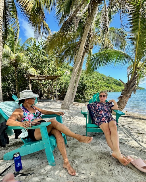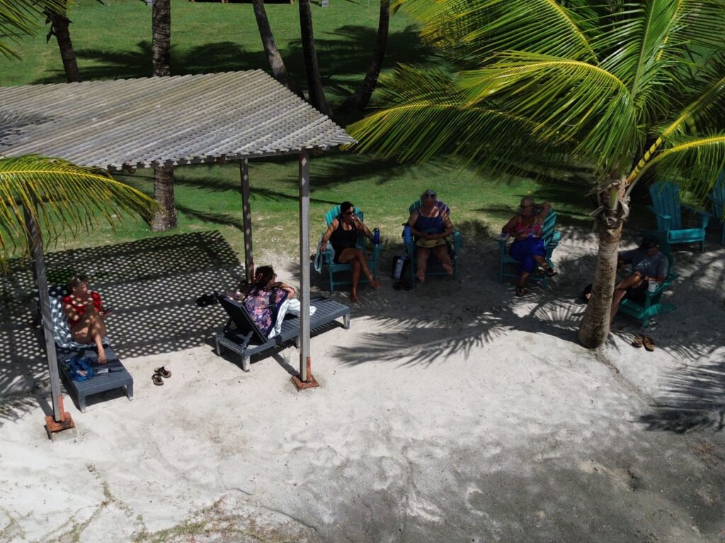 Christy and I dinghy back to Milu, clean up a bit and then decide to go to Hog Island to be sociable. We’ll just take 1 beer each as we have been drinking pretty solidly for the last 5 days. When we arrive there’s a kids birthday party going on and pretty much every sailor in Woburn is there. We meet some old and new friends and end up staying for 3 or 4 beers. Oh well, it’s fun and good to meet people.