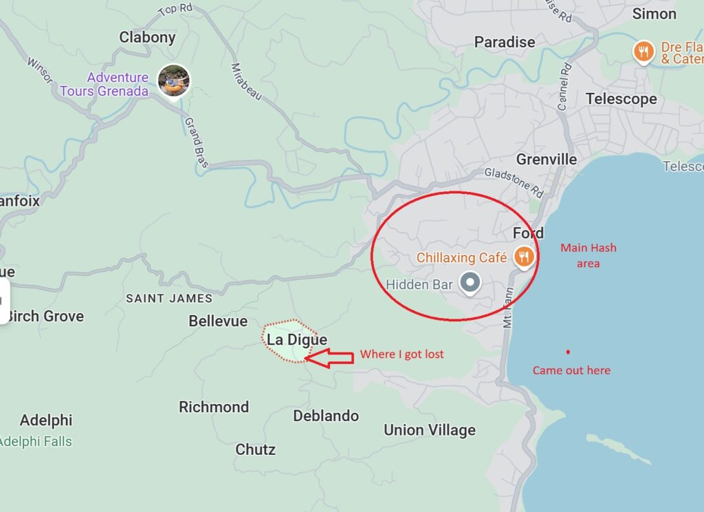 We do our best to feel normal and get rehydrated as we’re planning on doing the Grenada Hash today. Its a weekly event – the locals organize a run/walk somewhere on the island every Saturday. I’d heard about it and always wanted to go but never had a way to get to where they happen. Well we heard on the Cruisers Net that you call Abby and he will take you. So we’ve arranged to be picked up at Island View (by Treasure Trove) at 1:40 pm. Hope we feel better by then.