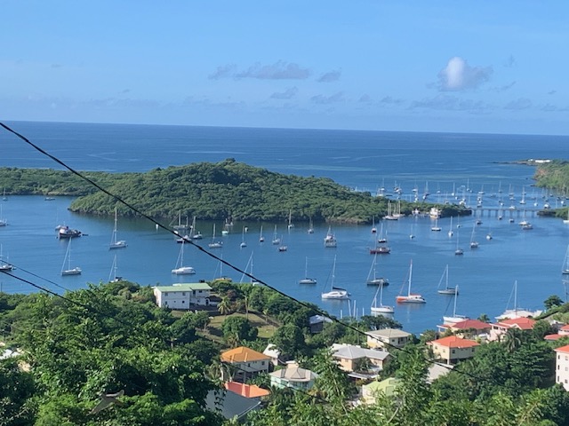The gang stops for another beer at a roadside bar on Upper Woburn. At the corner of Grand Anse and Lower Woburn Sue says the watermelons are good and the prices too so we buy one. Short walk back up to Island View where the walk ends. Some of the gang go into Taffy’s for another beer. That’s 4 and it’s not yet 10 am. For some, that’s the cruising life.
