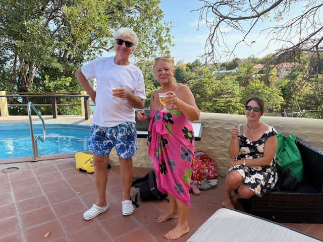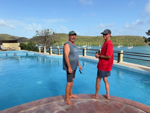 Around 3 pm we meet Anna-Marie, Nigel, Jim and Amanda at the dinghy dock then go up to the Secret Harbour pool for a swim and couple beers. Afterwards, they come back to Milu for some more chatting, nosh and a couple drinks. Everybody in this crew wide awake. Thankfully nobody likes to dinghy at night so the evening wraps up at a decent time.