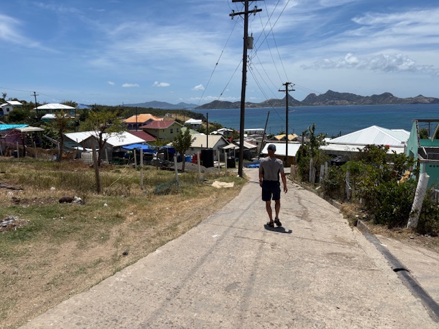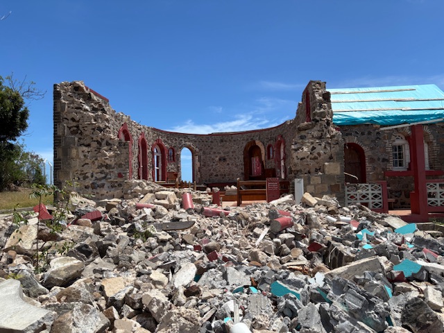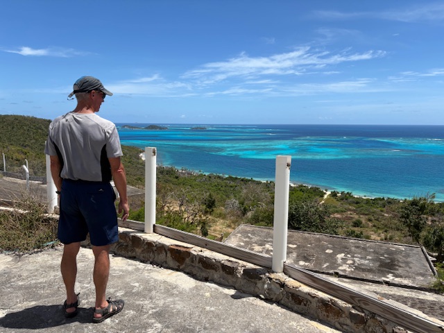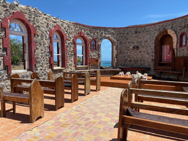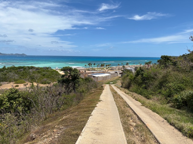 We heard about the old church being blown down and sure enough it is in bad shape. 200 years old and this was the first hurricane to defeat it. Still great views and we donate our pocket change to the cause. Walk through the town to The Ranch on the windward side. Town doesn’t look too bad as far as hurricane damage, tho there are definitely casualties.
