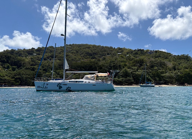 We arrive Bequia just before 1 pm so we still make good time. We anchor just off St. Margarets Beach which is a favourite spot and we are close enough that we can swim to the Beach. There’s also snorkelling close by which I will do sometime before we leave here.