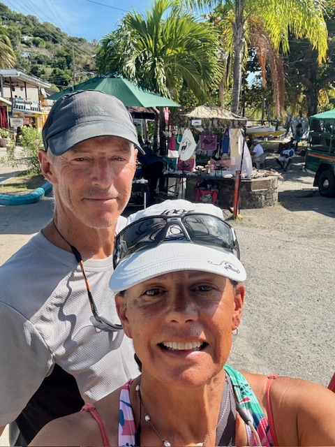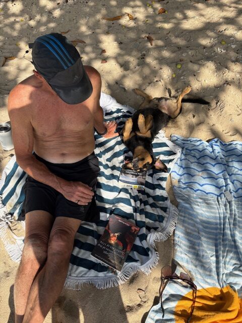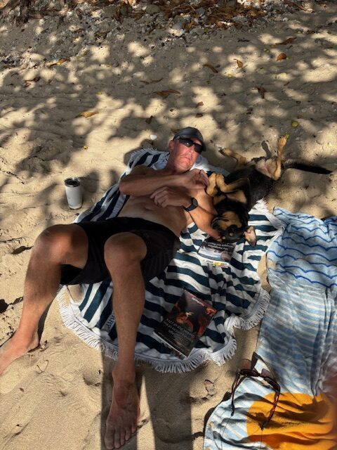 We’re all set so dinghy onto Princess Margaret beach and actually just chill for a couple hours, have a swim, read a book. A dog adopts us and settles on our towel but eventually gets bored and moves on. Even one of the locals thinks it’s funny.