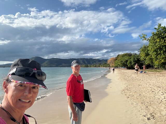 We go into Customs and Immigration pretty early. It’s straightforward and soon we’re clear to leave. It’s about 25 nms to Martinique so about 5 hours at 5 kts. We’d like to arrive in time to check in at St. Anne.