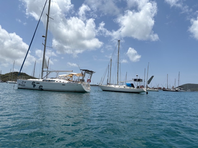 In the morning we motor into Le Marin, it’s a huge set of bays about a mile from St. Anne. Tricky moving around here though since there are shoals and reefs everywhere and about 2,500 boats anchored and moored between the two bays. Yeah, there’s a few.