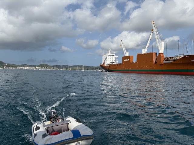 Next we dinghy over to where some of the shops are. We need to go to Digicel, the bank and get some groceries. Seems to be a strike in Martinique, nowhere on the island do we ever see ground beef and beef in general is scarce. Still we get what we need and head back to Milu.