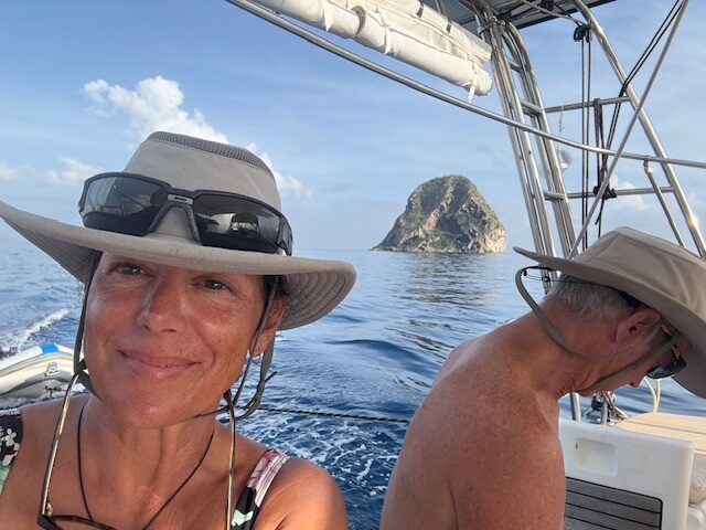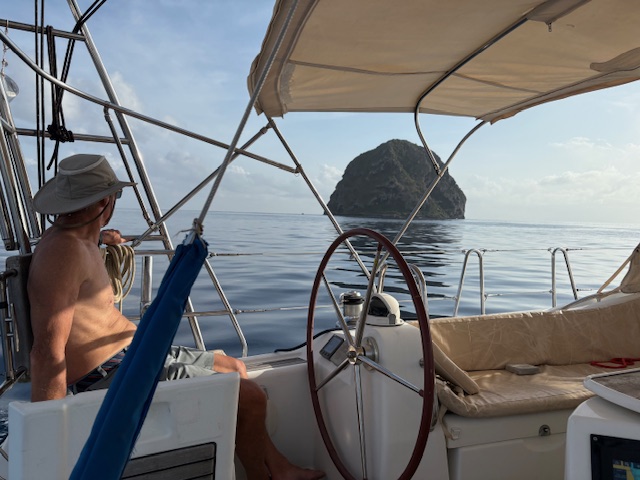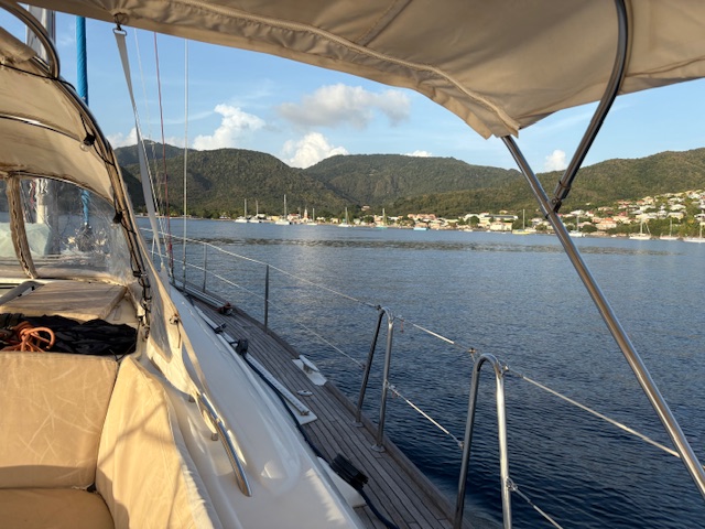 It’s now about 2 pm and Christy suggests going to Les Anses-d’Arlet. I thought it was too far to get there before dark but seems to be quite makeable. We motor out of Le Marin and head north to the beaches. It’s a little over two hours and we find a good anchorage with lots of light left. The ocean is water-ski-calm and we’re glad to be settled.