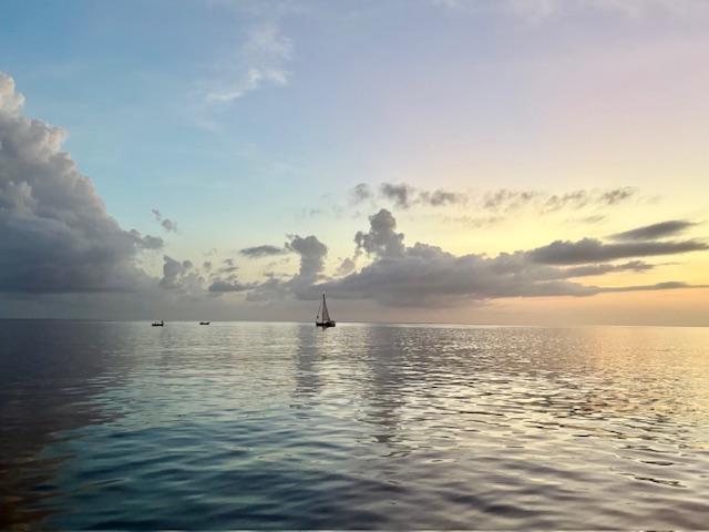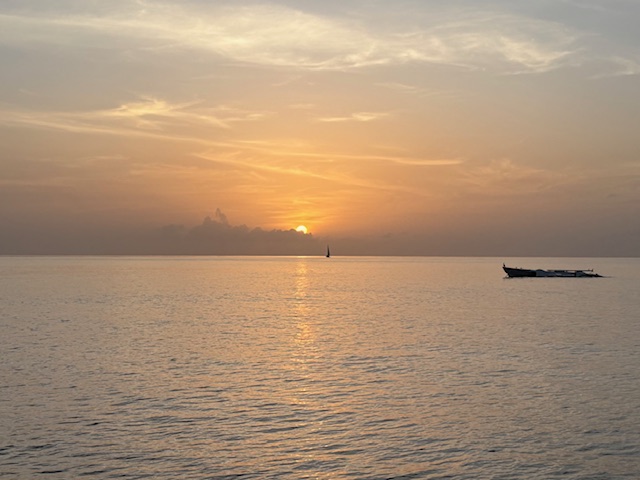While our anchorage was blissfully calm when we arrived, overnight there will be a large swell and we’re rocking and rolling all night.