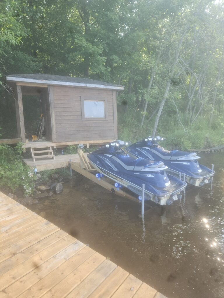 So over the next few weeks, I built these. Cost about $1600 in materials but beats the $2000 I paid to fix the sunken sea doo and also cheaper than getting other devices that float them. Even tried second hand. They’re a bit steep but I’ll lower them next year.