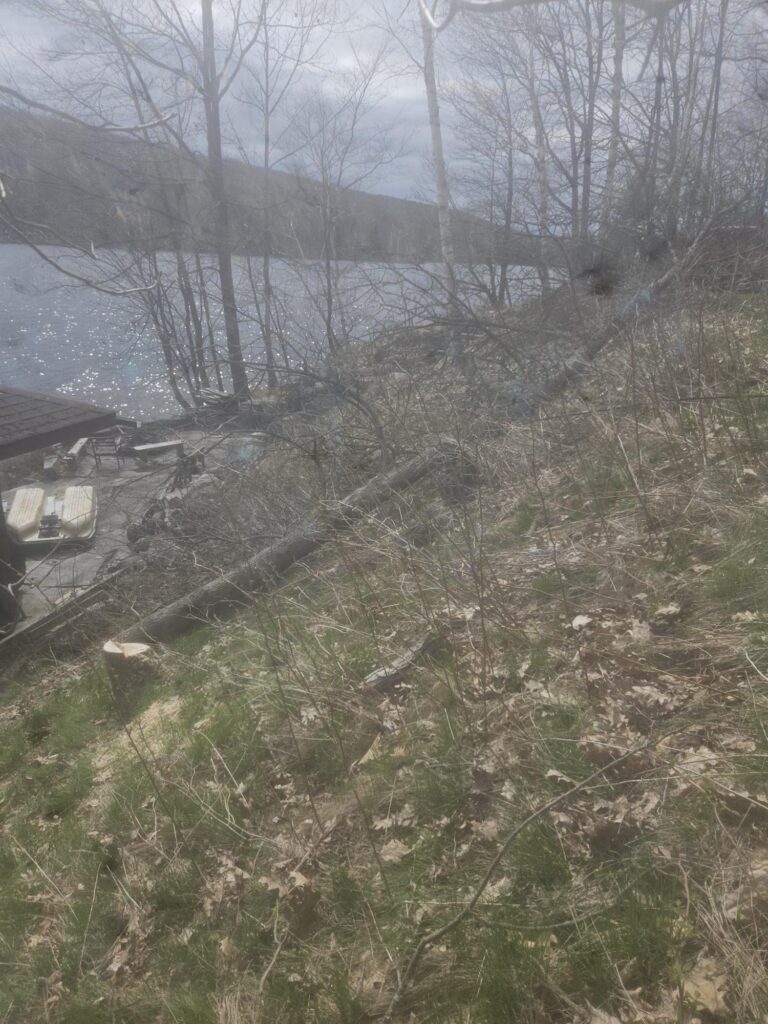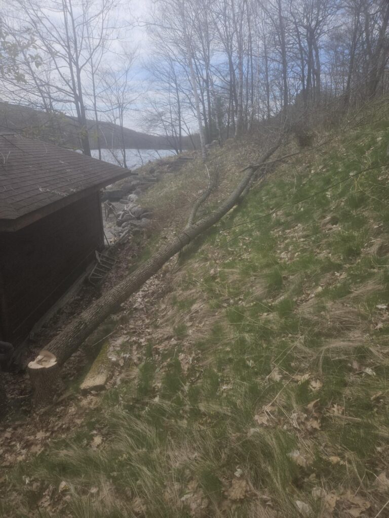Met with Dale Maw to discuss landscaping and fixing the retaining wall behind the cabana. He advised we cut some trees, so I did. At least now we have some firewood for the coming winter. We’re down to twigs but still having fires. (We will burn the last of it on May 31st!)