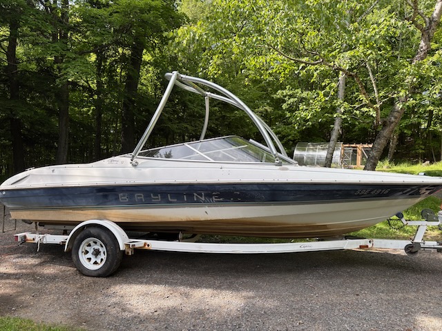Launched the docks, launched the sea doos on the one nice day in May we had. Christy and I went to Toronto on May 28th – I had a lunch date with Cloudli, then golf on Thursday with Ben, then golf on Friday with the cousins. Came back on a ccccold Saturday to pick up our new boat only to find this.