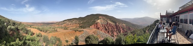 Takes us for breakfast somewhere on the plains east of Marrakesh, then we head further east through the Atlas mountains towards Ait ben Haddou. We stop at a few places for coffee and to take pictures of the spectacular views. At the first stop, we meet Abdu’s cousin who is driving two other young couples, Sasha and Muna from Switzerland and Fin and Eloise from England on the same route. We will get to know them as we make all the same stops all the way to the Dades Valley and beyond to the Merzouga dunes on the edge of the Sahara.