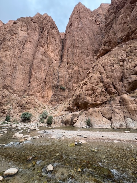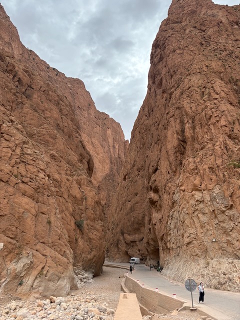 Next day is another long drive towards the dunes of Merzouga. First stop three times, once at another beautiful gorge. Very touristy too. Professional hitmen at the top trying to sell you stuff or take donations for having your picture taken with Berbers. They’re nice enough tho. Some rock climbers on the steep canyon walls and there are outfitters that will take you up.