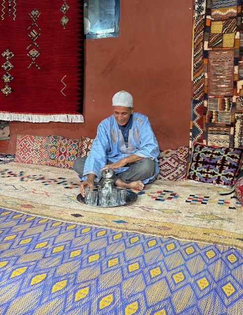 Our illustrious guide has arranged a “special” carpet display for us down a back alley. The head salesman is a pro sheister but funny enough and we trust them enough to buy a carpet. Christy wanted one anyway.