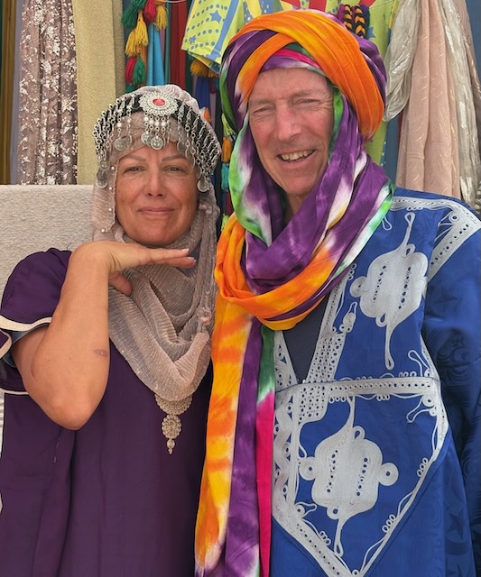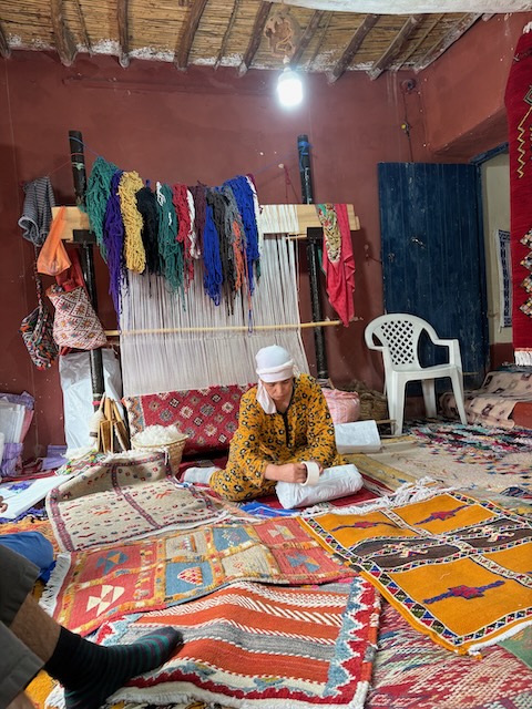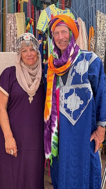 We check in to our pretty average spot, then go medina walking, Christy is looking for another carpet. After going into several shops (and buying one blanket) we meet a local guy who is somehow trustworthy, you can tell he’s affluent and not seedy at all. He takes us to the guy who has the carpets. Turns out he’s also building a house and he gives us a tour. Fascinating the construction techniques and the detail, all done by hand. Both he and the “agent” are super nice and seem very genuine, we are trading stories about golf and soccer while we tour his house, then his carpet warehouse. Doesn’t seem concerned at all whether we buy or not, but Christy does buy another nice one.