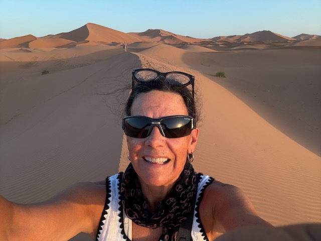 The guides are pissed at Fin and Eloise who have decided to try “sand boarding” which delays our departure. No skin off our noses tho. All 6 of us have elected to forego the return camel ride in favour of a pickup truck. Christy and Muna in the cab, the rest of us in the back.