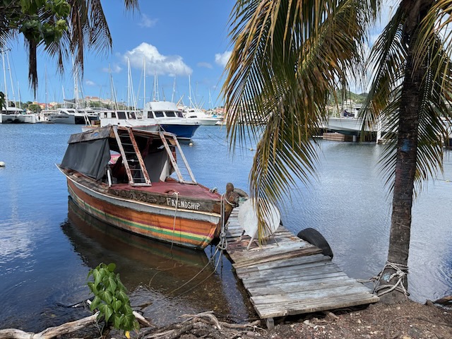 We’re up early every day and today we get on the water early (after usual repump of the dinghy) to go to Island Water World to look for parts to connect the new pressure tank. Take the good ol’ Number 2 bus in, they have what we need and we buy a bunch of other stuff there, including rope replacement for the traveler, a small rod for fishing in the bays and some whatnots and watchamacallits.