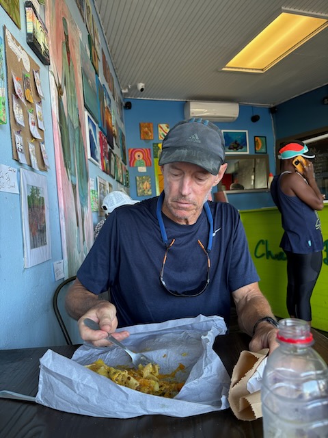 It’s a hot walk but we do some comparison shopping at the Ram, CK’s, get a roti, (“No minis, no chicken, no beef, no fish”) and hit a couple of other places looking for a pepper mill. Apparently, the don’t have those in Grenada.