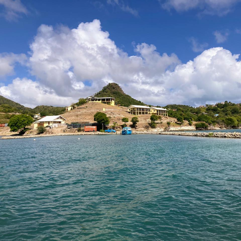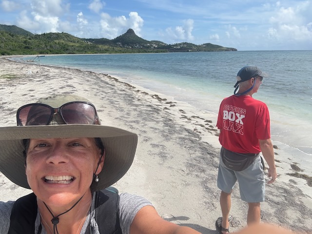 We plan to move over to Paradise Beach today but first decide to go on a walk around this end of Carriacou. There is a hike up the second tallest hill on the island but by the time we get rolling it is too hot to attempt it. We’re not sure of the state of the trails after the hurricane anyway. Good excuse, right?