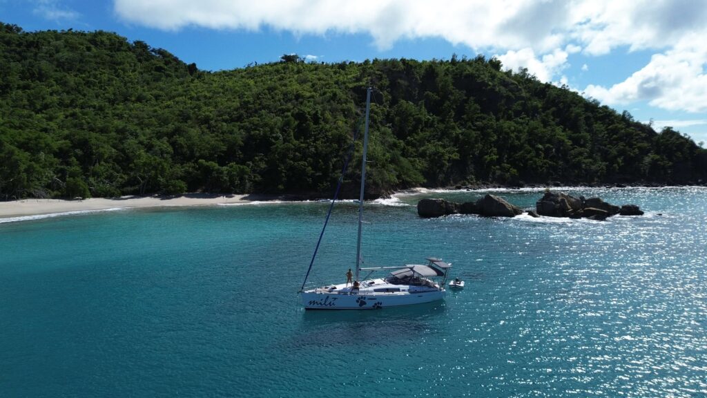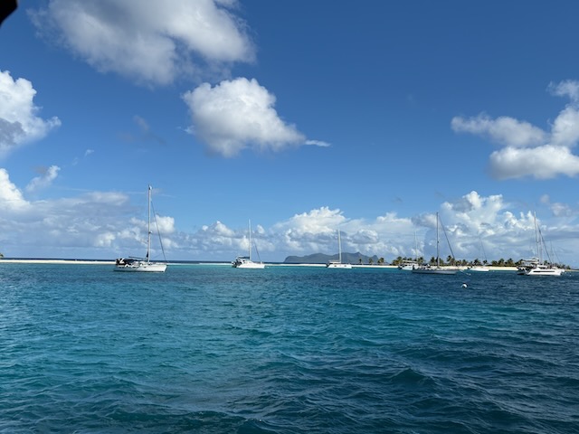 We take off fairly early, drop off our somewhat shaky mooring and head for Anse La Roche on the north end of Carriacou. We’re going to try and have lunch at Tim’s there. The sail up is nice, we anchor in the bay with one other cat. We stopped here 7 years ago on our 20th wedding anniversary with Andy, this is largely what got us restarted on our sailing journey.