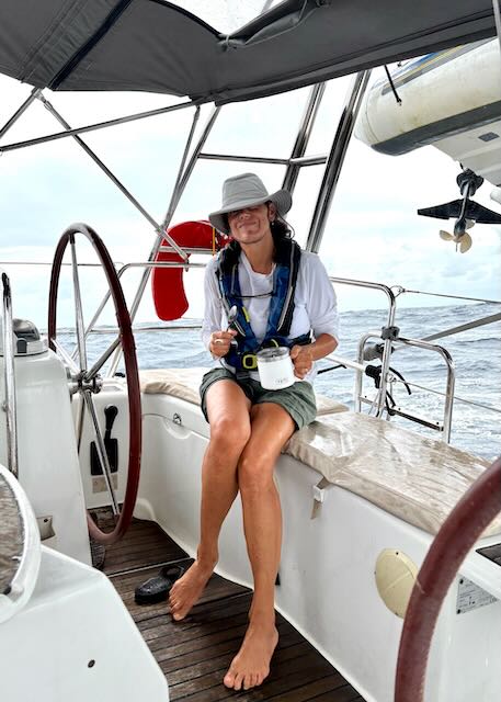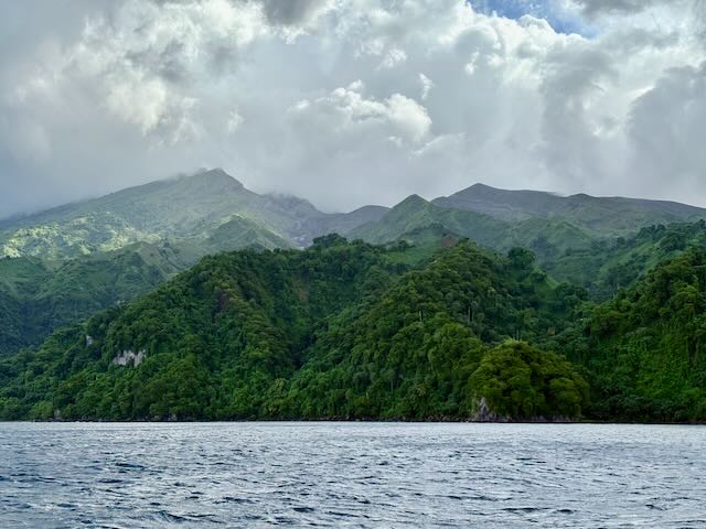 The weather has been a bit nasty overnight and even this morning. Frequent rain squalls and blustery. We wait for a gap in the rain to bring up the anchor and head out. We leave about 8 am. The wind in the St. Vincent channel between SVG and St. Lucia is supposed to be strong this morning so we wanted to wait for it to die down a bit but we can’t delay too long or we will be late in St. Lucia.