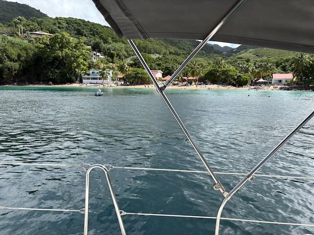 We motor out of Anse d’Arlet dodging the many fishing bobbers and move the 1.5 nm over to Anse Dufour, where we have never anchored before. Last year we went to Anse Noir which is right next door but in the spirit of new adventures we try Anse Dufour.
