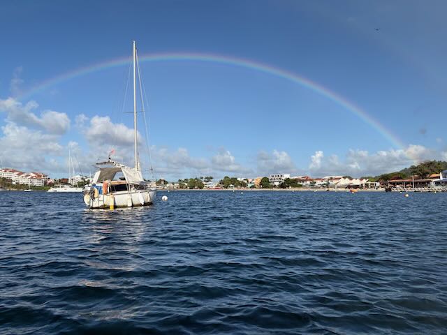 BTW, our anchor light stopped working again in Anse d’Arlet, grrr. I tried retesting the wires from inside the boat again and power is there, but when I put power to the wires that go up the mast, nada.