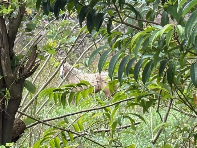 Carry on up the way for about a another km or so, we see this beautiful white horse just grazing in the field. It’s starts getting somewhat jungly but it’s pleasant. We’re not sure where this is going but it’s not going to the jungle bar on the river Christy wanted to see on foot and when I tell her that, she wants to backtrack to the other trail that might take us there.