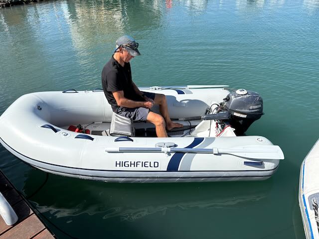 We make our way into the marina to greet our new dinghy which is supposed to be on the dock at 9 am. We’re a bit early and it’s not there so we go to a chandlery. When we return, there is a brand new dinghy on the dock and a tall, Nordic-looking couple looking at it. Since we met a French couple on the dock yesterday who also bought a dinghy, it is possible this is theirs, not ours, so we ask. “No, we were just admiring it”. Turns out it is ours. Their names are Ben and Astrid from the Netherlands and we strike up a conversation. They have dinghy problems. What a stroke of luck that would be if they bought our old one! We tell them about the sale going on and they go to investigate while we prepare ours for launch.