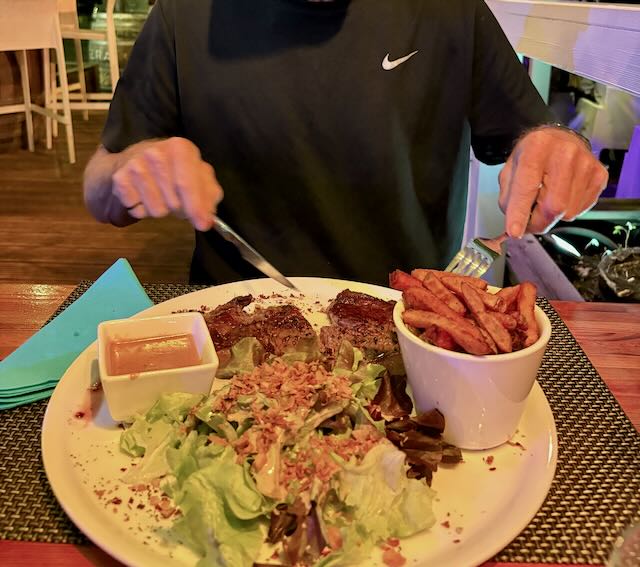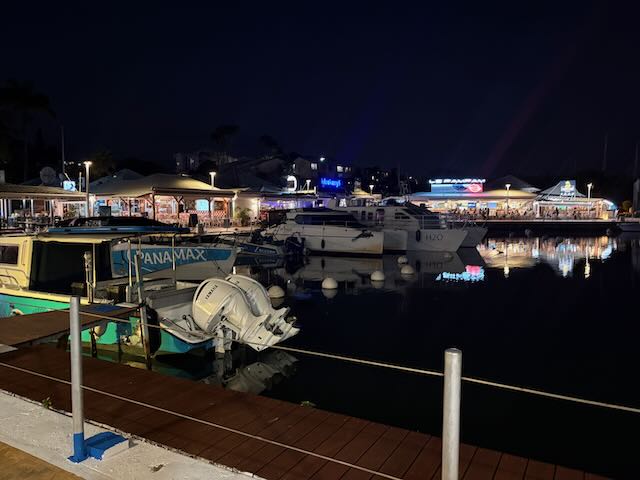 We accept the dinghy deal and tell Ben and Astrid about it via WhatsApp while we are having a birthday dinner and (non-alcoholic) drinks at the marina restaurants.