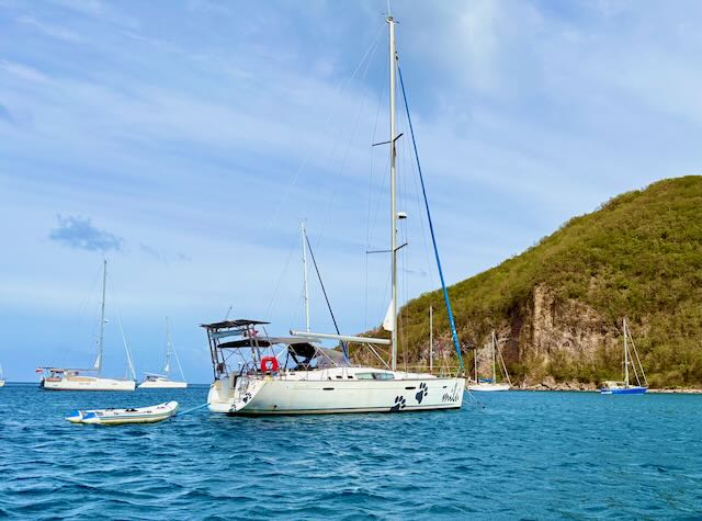 Christy snorkels and cleans more of the boat bottom, we generally get ready for an early departure tomorrow morning. We were planning on a 6 am departure but Christy talks me into making it 5 am. We thought about going in for one last dinner in Guadeloupe but never do. Instead, we lounge about and get to bet early.
