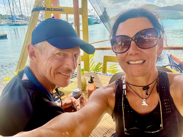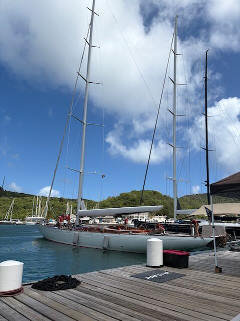 In the morning we decide to explore a bit of Falmouth/English Harbour on foot. Dinghy in and manage to find a spot to tie up AND lock the dinghy. The locking part is usually the most difficult on this dinghy dock. We find out on Monday there is a much more civilized dinghy dock over by the marina.