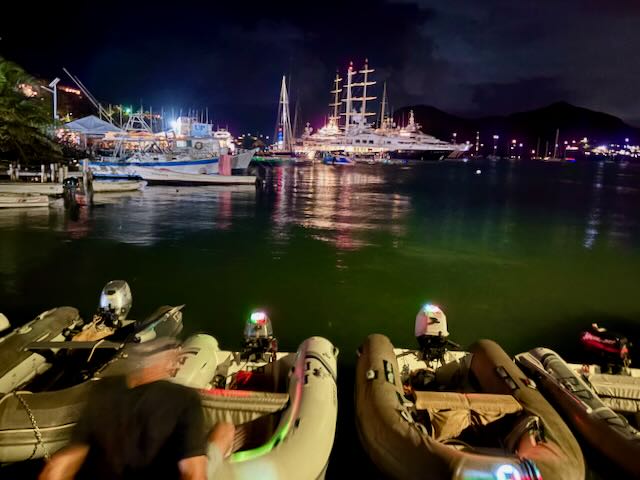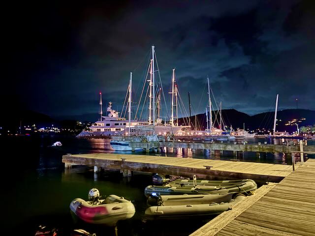 Back at Milu we get cleaned up – I even shave! – before dinner then head in to meet Dave and Jackie. Dave meets us at the dinghy dock, they parked on the other side of the marina restaurant complex which we didn’t know about but is a much much better landing than this public one. Technically you’re supposed to use the services to use the dock but nobody checks that kind of thing. File that away for next time.