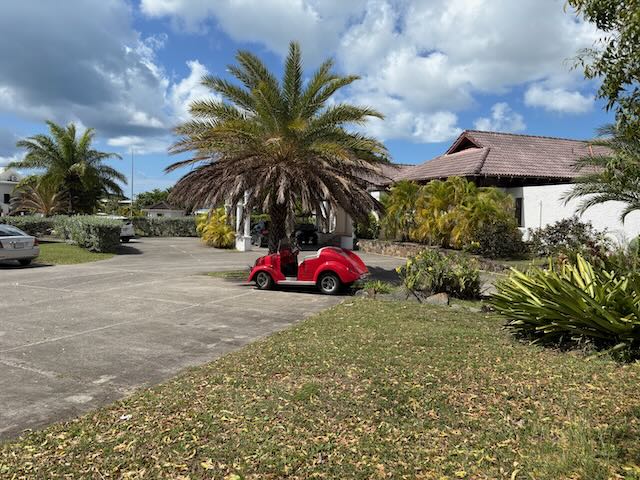 So what to do today? We go back to Milu, get some gear together and decide to explore the town of Jolly a bit. On shore, we ask about renting a golf cart for the afternoon (it’s now about noon). We find a local woman selling fruit who says we need to talk to Red. She calls him and I talk to him. US$30 for the afternoon, he’ll meet us in the parking lot in 10 minutes. The nice woman tells us where the golf carts are and I wait there while Christy explores the nearby (excellent) sports facilities you can use if you’re staying at the marina.