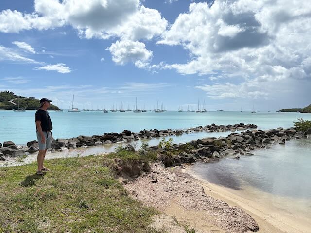 This morning is quite calm and David calls to say there is not enough wind to foil so kaibosh on that plan. They have decided to go to North Sound at the top of the island and ask if we want to join them – it’s a tricky entrance and we could follow them in. They have to be back in Jolly for Tuesday, when they go on a pier and get ready to haul out for the season next Friday. The offer is enticing but looking at the weather Christy and I decide we should head south sooner than later, we don’t want to get windbound in Antigua for a week and be stressed for time returning to Grenada. We have a tentative schedule to return to Grenada, stopping at certain islands on the way. A lost week would be bad.