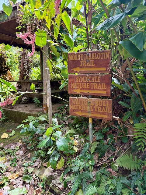 There is a big park office at the Nature Trails but nothing is open, which is good since that means nothing to pay. There is also a sign for the kickoff to Section 11 of the Waitukibuli Trail – so when we walk back to where we are going we will have completed Section 10, pretty much by accident.