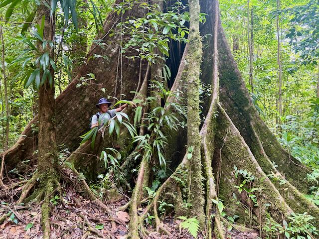 The walk to the Syndicate Nature Trails is pleasant and easy, follows a paved road all the way. We pass the starting point for Morne Diablotin, the highest peak in on the island and second highest in the Antilles, behind Soufriere in Guadeloupe. Says it’s only 2-3 hours to the top from here but it looks diabolical. Little Dominican mountain humour there.